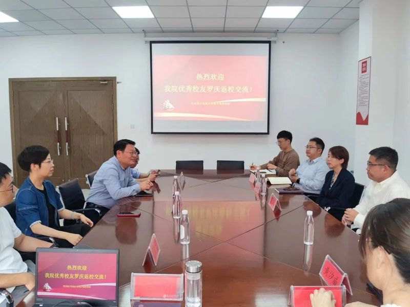 交流会上,电子信息学院党委书记陈龙代表学院领导班子对罗庆的到来表示热烈欢迎。他详细介绍了学院这几年的发展,学科建设等基本情况,尤其介绍了学院近年来在集成电路设计与集成系统专业建设的相关成果,期待未来与校友增进交流,深化合作。